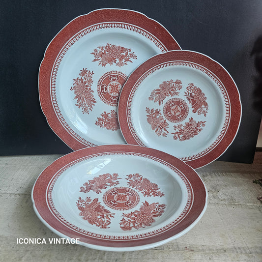 Vajillas vintage decoradas procedentes de las principales manufacturas europeas, en porcelana, semi porcelana y cerámica. Las descripciones incluyen el país de origen, su marca, el año estimado de fabricación, el número de piezas y su distribución, estado de conservación, así como los posibles signos de antigüedad. Las imágenes forman parte de su descripción.