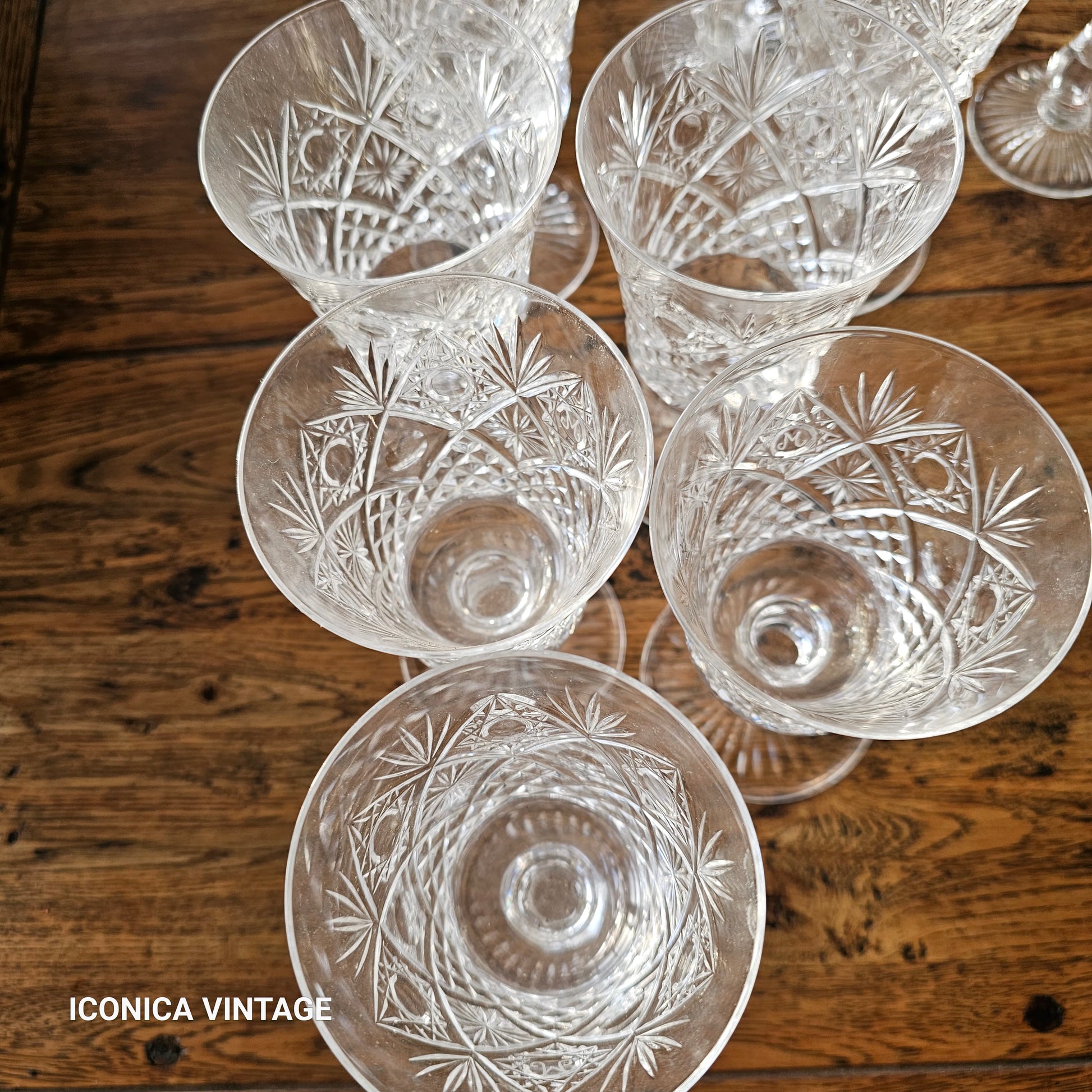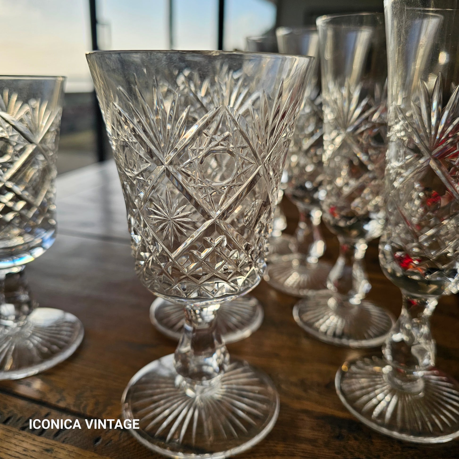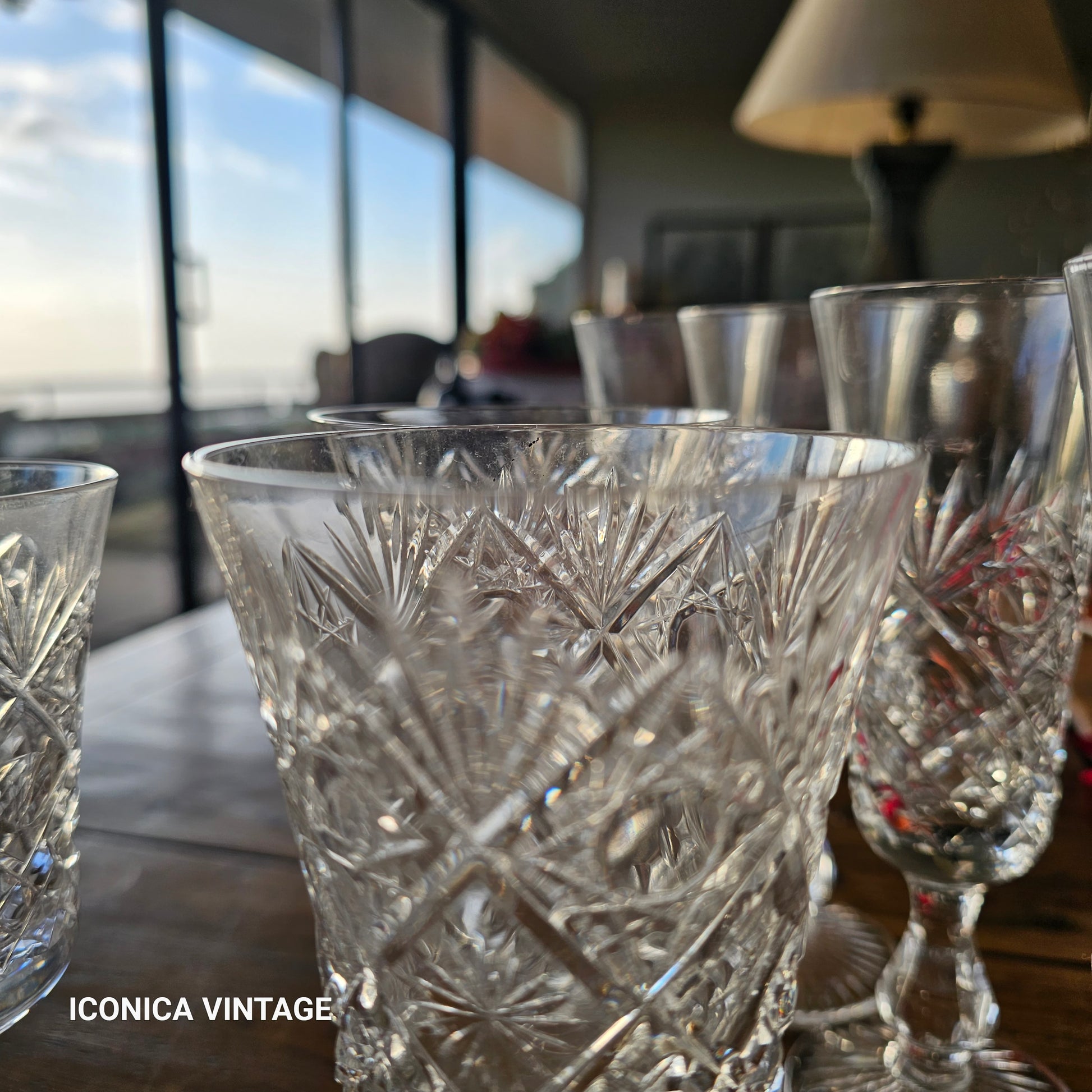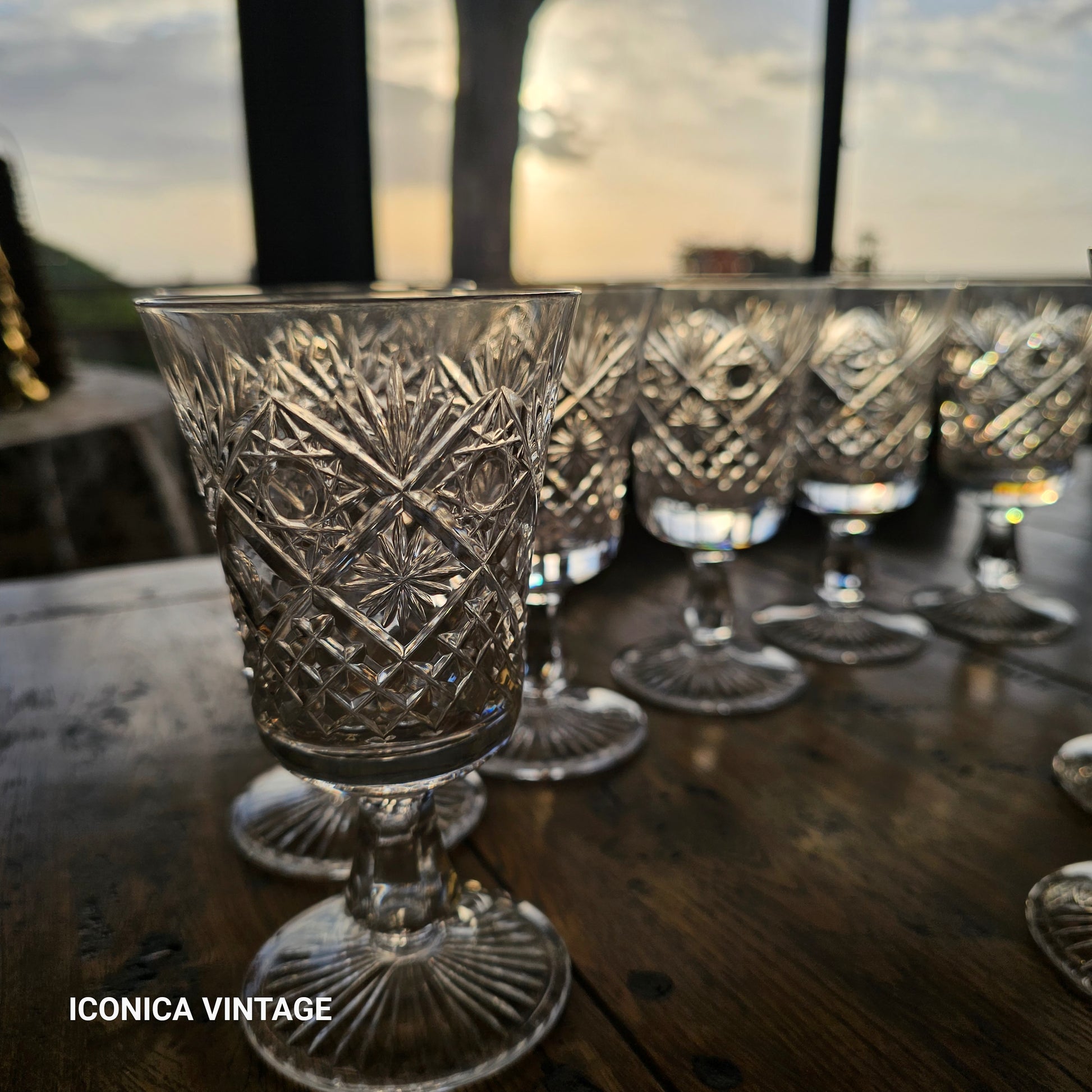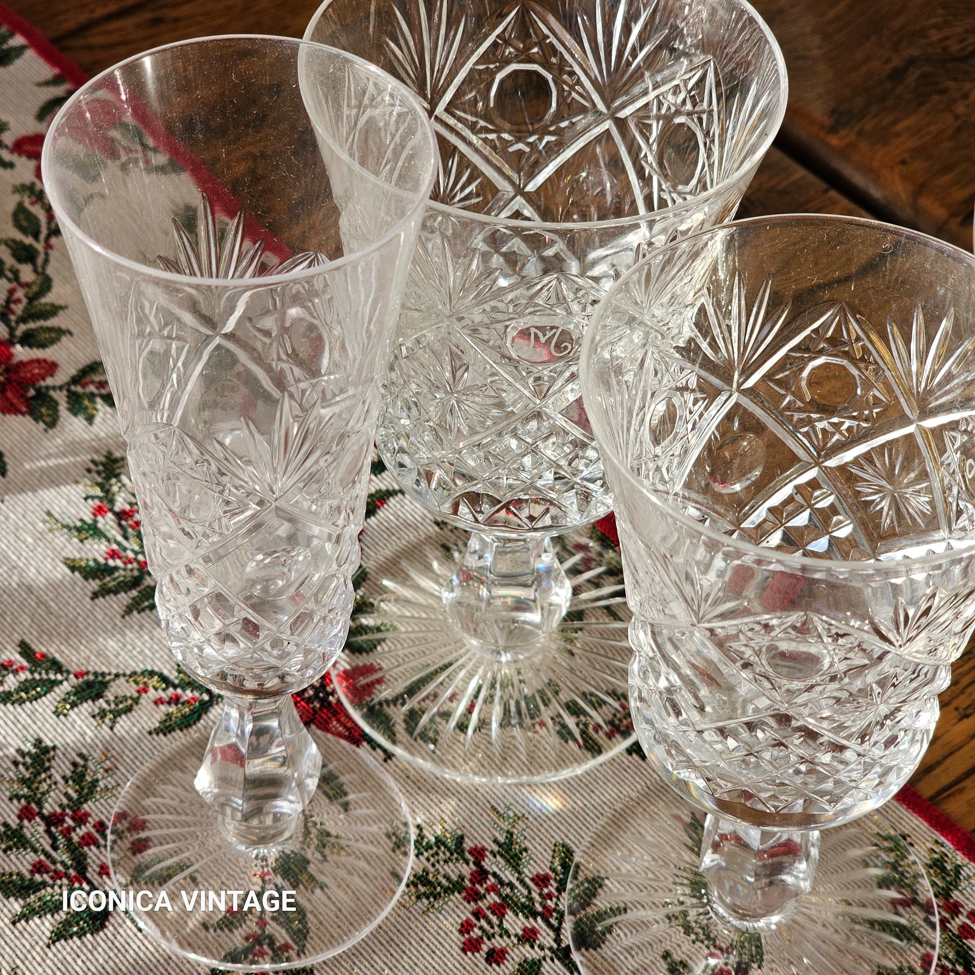 Juego de cristalería Dijon de 30 piezas, cada una finamente tallada con motivos geométricos superpuestos que capturan la luz con elegancia. Grabado al ácido con una discreta inicial M, este conjunto refleja la artesanía francesa de mediados del siglo XX. Cristal de Lorraine. Ideal para comidas formales y colecciones de cristal de época. Perfecto para quien aprecia el diseño vintage de calidad y la funcionalidad refinada. Contiene