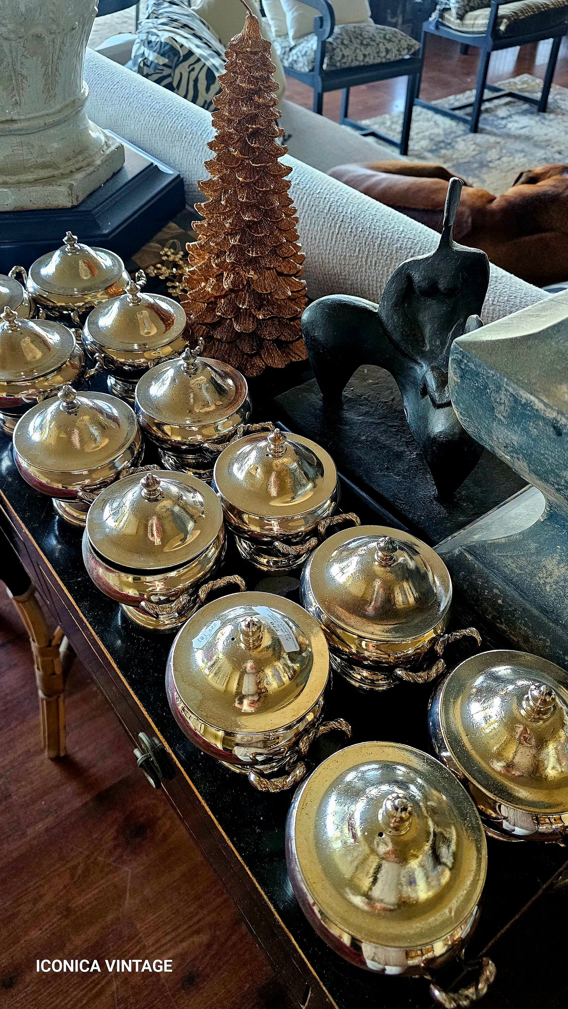 Gran Set de 12 juegos de mini soperas en metal argenté