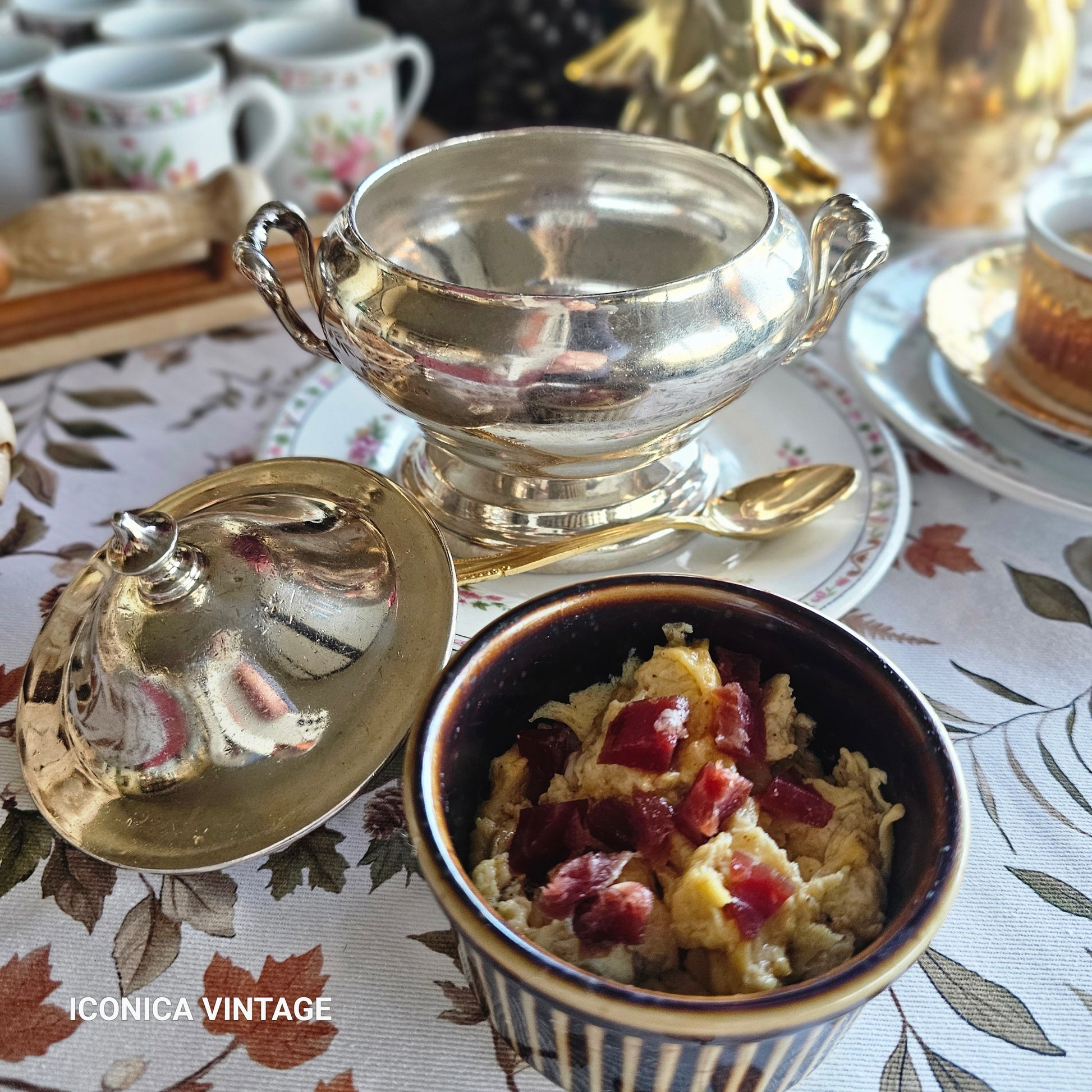Originales y exclusivas mini soperas alemanas acabadas en metal argenté. Contienen moldes refractarios para poder utilizarse en el horno convencional o en un microondas. Su función es mantener calientes los alimentos. Decimos que obtienen un doble wow por el impacto que causan colocadas en las mesas,  y por la sorpresa de la receta que contienen, pues no se conoce hasta que levantas la tapa!.