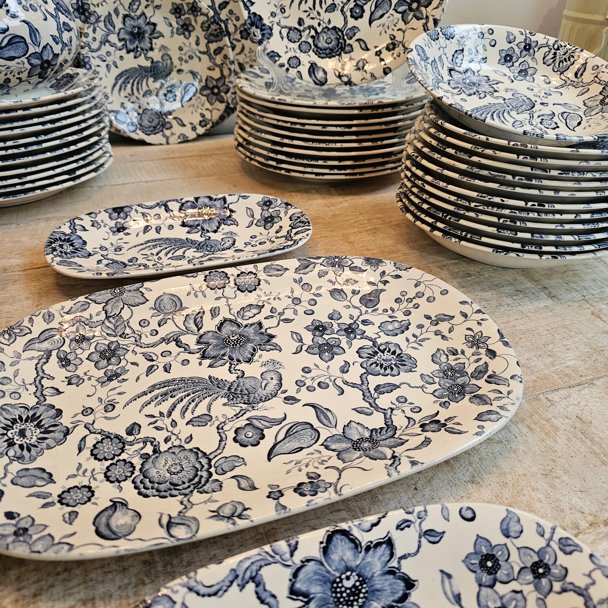 Exquisita vajilla Villeroy Boch colección Paradiso, con la icónica ave en el centro de cada pieza. Fabricada en vitro porcelana de alta calidad alemana, resistente a microondas y lavavajillas. Conjunto completo y difícil de encontrar en el mercado actual. Piezas de finales del siglo XX en muy buen estado vintage. Vajilla muy versátil, muy fácil de combinar, ideal para celebraciones importantes como para su uso diario. Observe las fotografías, forman parte de la descripción. Las últimas fotografías corresponden a ejemplos de combinación con diferentes colores y situaciones.