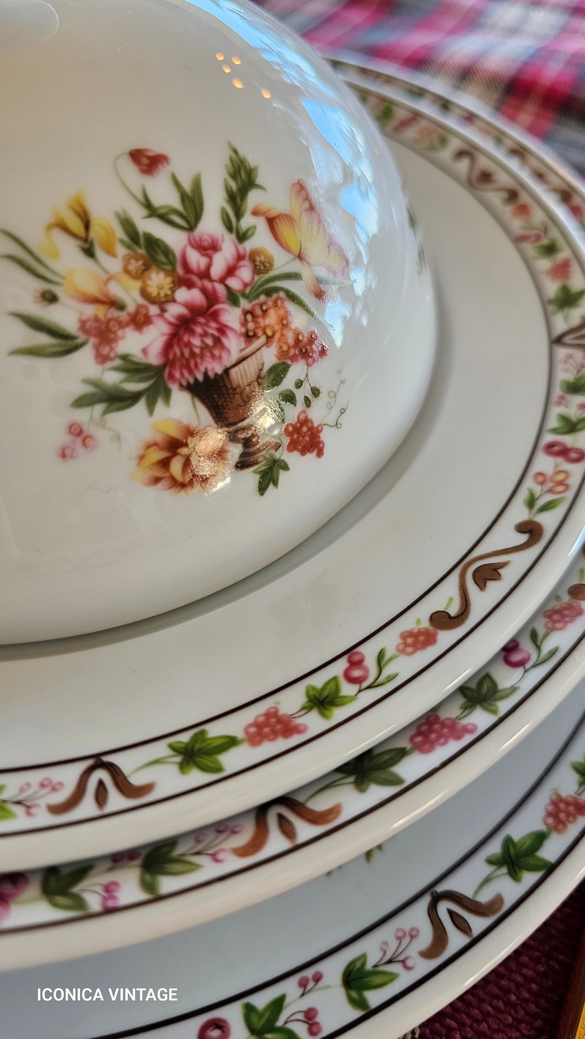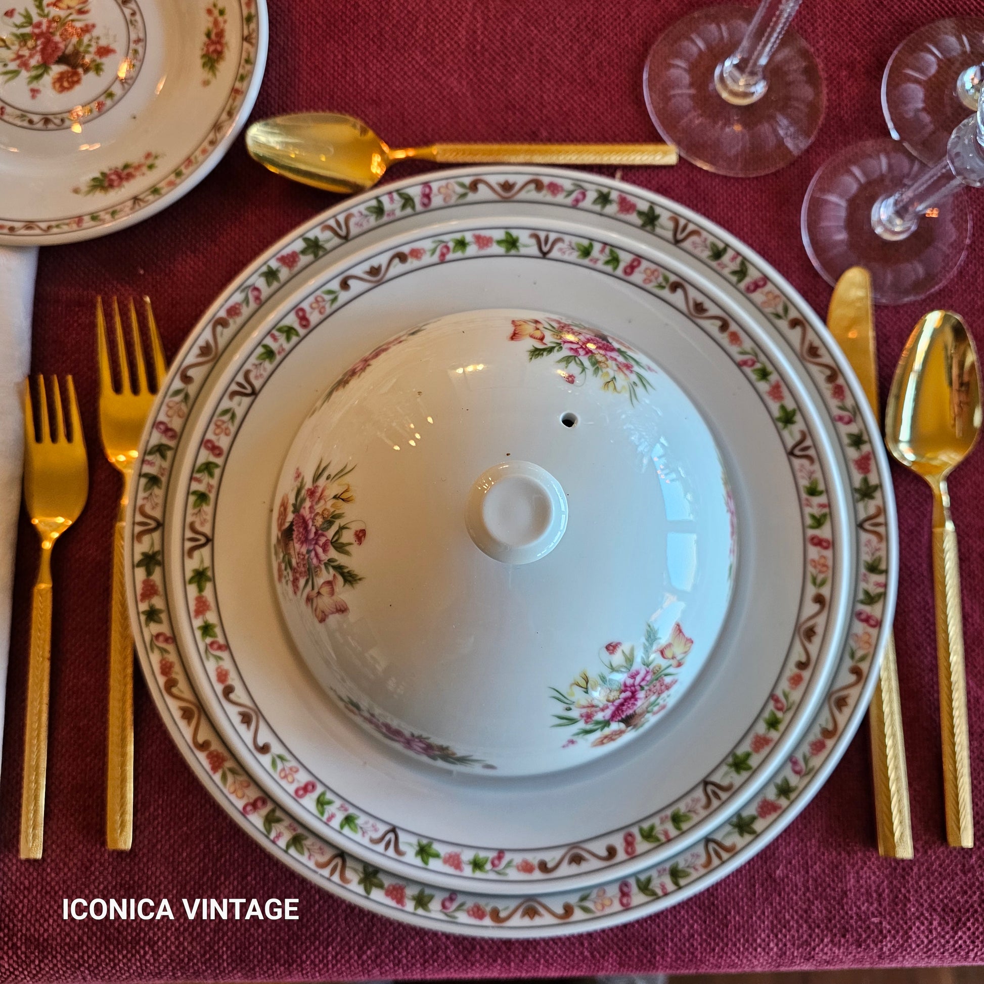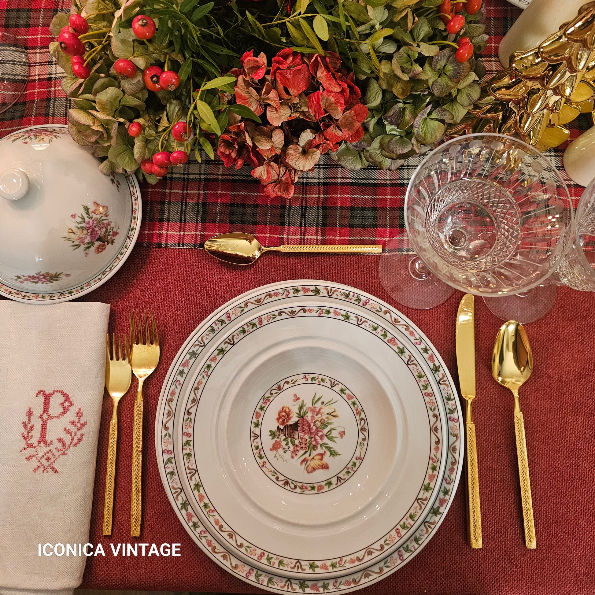 Ideal en cualquier estación del año, especial para todo tipo de celebraciones. Combina con todas las paletas de colores. Preciosa y muy exclusiva vajilla de porcelana de Limoges, diseñada por Raynaud. Dispone de 78 piezas en muy buen estado vintage, originales y útiles, aptas para todo tipo de menús. Observe las fotografías, forman parte de la descripción. Ejemplo, protagonista en Navidad.